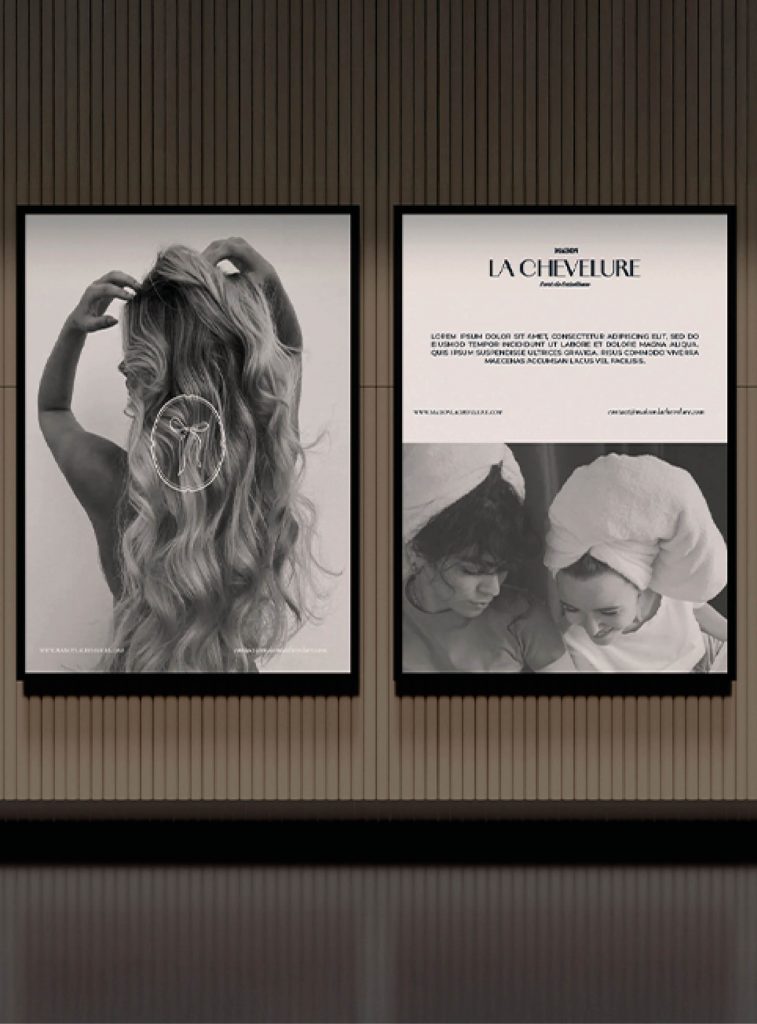 L’objectif est de refléter la vision de La Chevelure : sublimer la beauté féminine à travers un savoir-faire artisanal d’exception et des produits soigneusement sélectionnés, offrant à chaque cliente une expérience sur-mesure. Cette identité graphique, à la fois sophistiquée et chaleureuse, traduit un univers où le luxe se mêle à l’authenticité, et où chaque détail est pensé pour célébrer l’art de l’excellence.