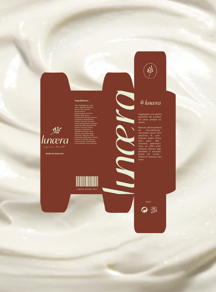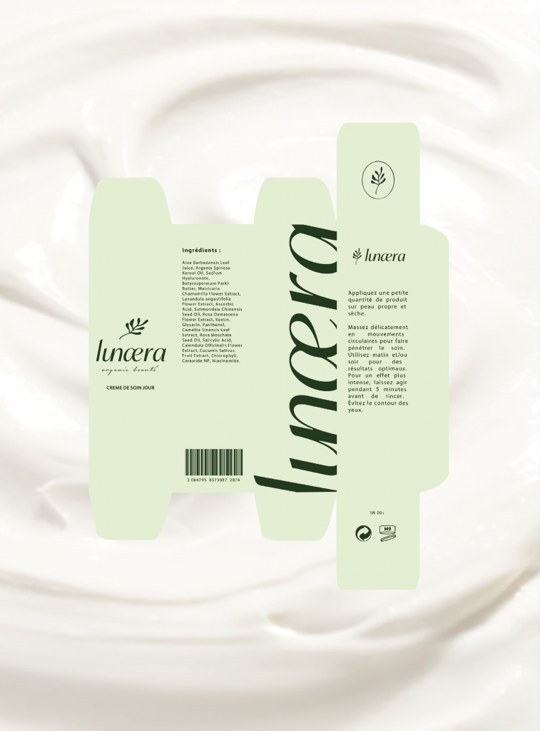 L’identité visuelle de Lunæra a été conçue pour incarner l’essence naturelle et engagée de la marque, tout en évoquant la symbolique de la lune et de la nature : rythme, douceur, féminité. En alliant sobriété et poésie visuelle, cette identité reflète la philosophie de Lunæra : des soins respectueux du corps et de l’environnement. Le projet vise à instaurer une cohérence graphique forte et sensible, en accord avec les valeurs éthiques et esthétiques de la marque.