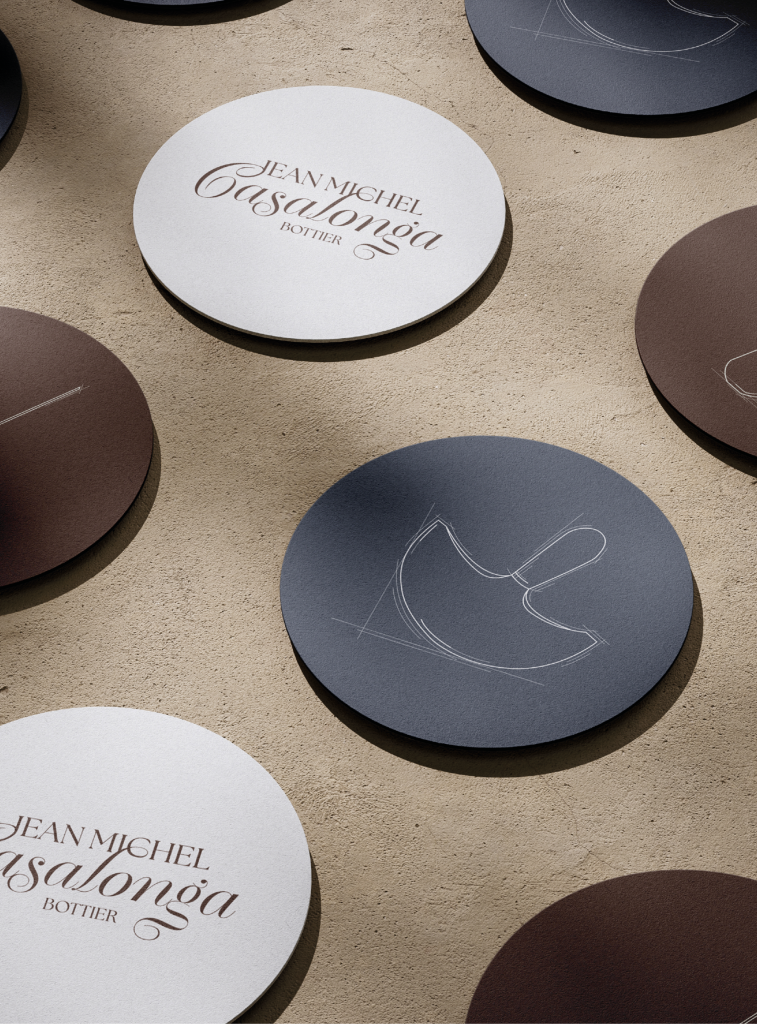 L’identité visuelle de Casalonga célèbre l’élégance et le savoir-faire artisanal du métier de bottier. Pensée pour refléter le caractère intime et prestigieux de l’atelier, elle met en lumière la tradition, le travail du cuir et la précision du geste. L’objectif est de créer une image raffinée et intemporelle, en parfaite adéquation avec l’univers de l’artisanat d’excellence.