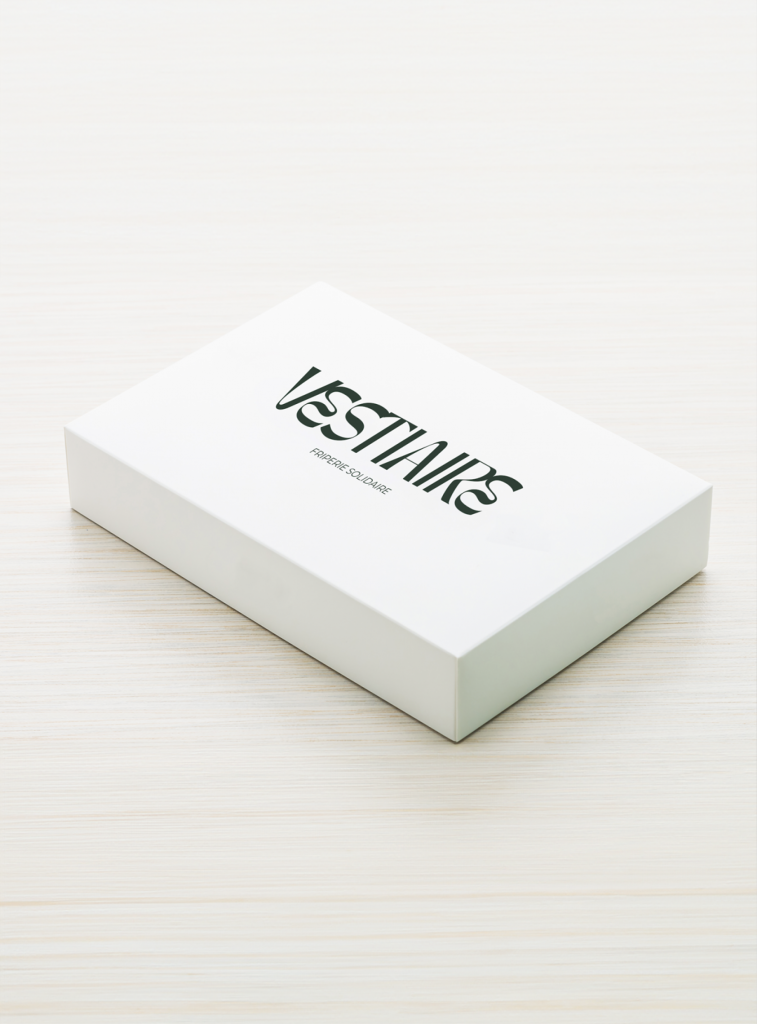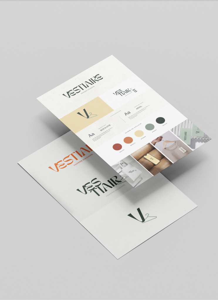 L’identité visuelle de Vestiaire, friperie solidaire, a été conçue pour refléter à la fois modernité, accessibilité et engagement.